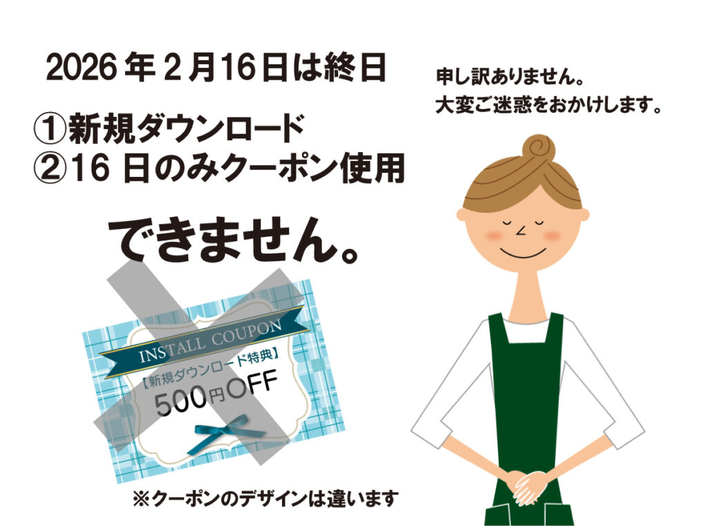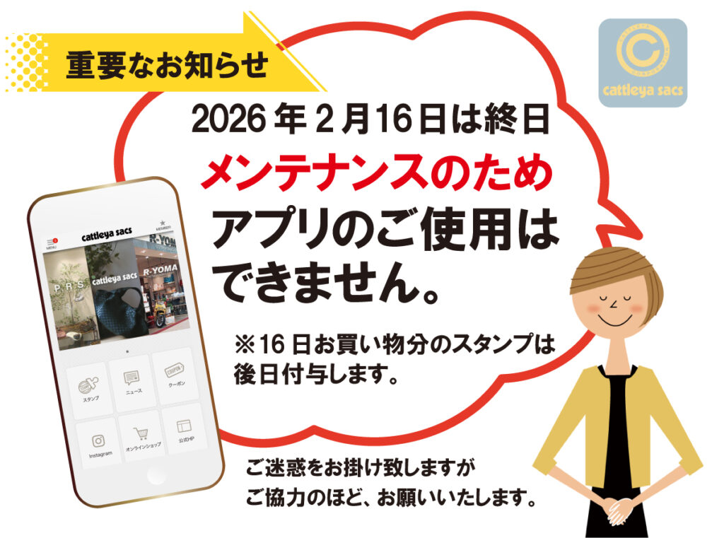 アプリメンテナンスに伴い、2026年2月16日(月曜日)にお買い物された方に